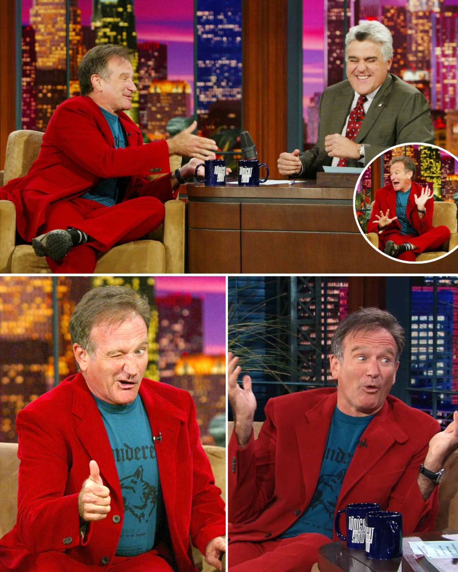 And Jay Leno — the man who had interviewed presidents, pop stars, legends — clutched the arm of his chair like he was trying not to be thrown off a rocket he definitely did not sign up for. Every time he tried to steer the conversation back to something normal, Robin took the wheel and drove it straight into another world. Another character. Another accent. Another blast of brilliance no one could predict.