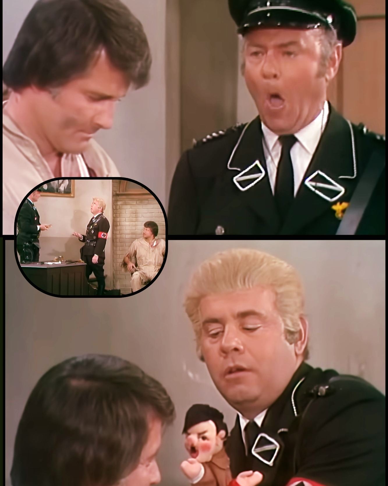 Across from him sits Harvey Korman, cast as the interrogator who is supposed to be in charge. He leans forward with authority, ready to steer the scene back on course. Within seconds, it becomes painfully clear that control is no longer an option.