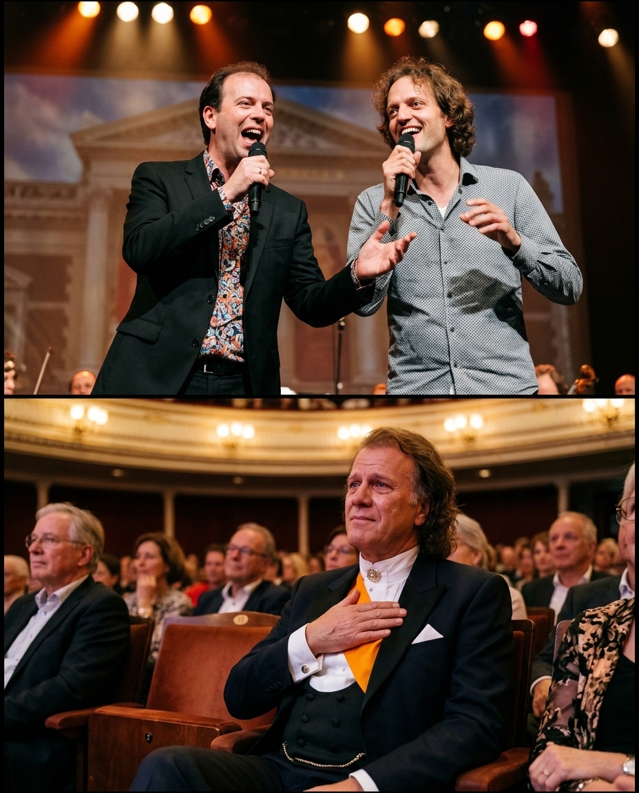 In that moment, André Rieu was not just the world-famous conductor loved by audiences across continents. André Rieu was simply a father, listening as Pierre Rieu and Marc Rieu turned a familiar song into something deeply personal.