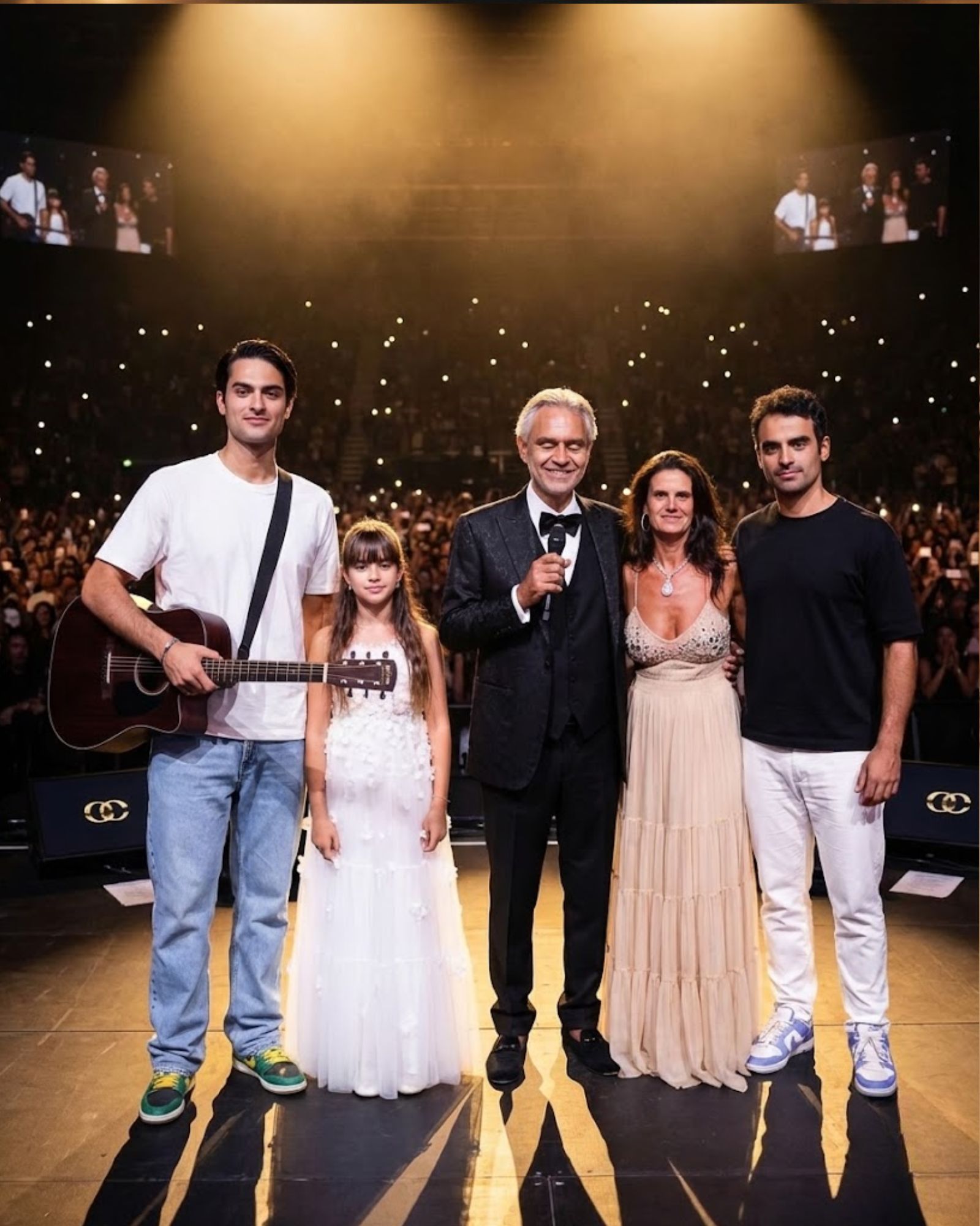 They simply stood there—beside Andrea Bocelli and Veronica Bocelli—like a small circle forming inside a much larger arena.