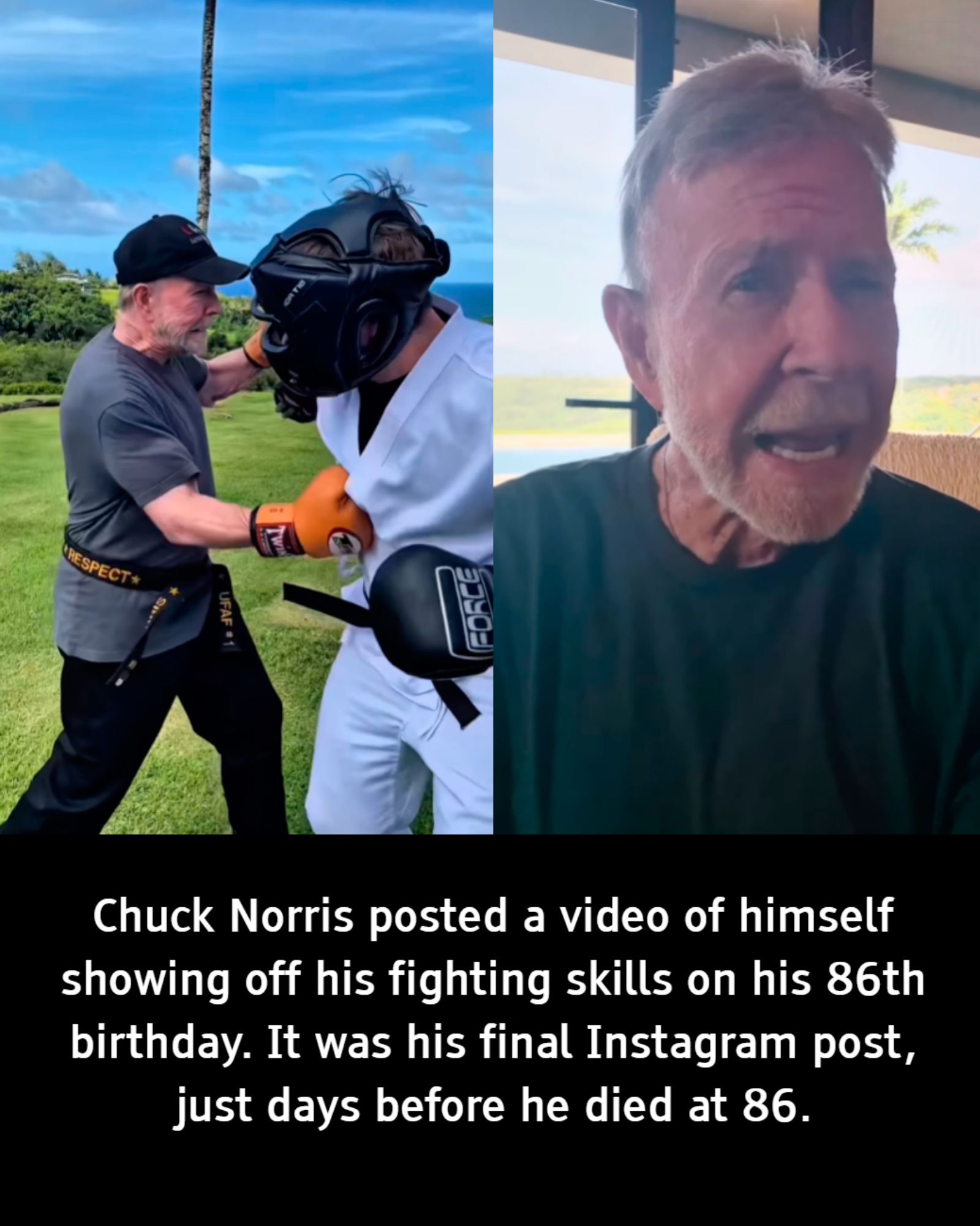On March 10, Chuck Norris turned 86 in the most Chuck Norris way imaginable: outside, under bright Hawaiian sun, still moving like a man who had spent a lifetime refusing to slow down. In the video he shared that day, Chuck Norris looked loose, playful, and unmistakably himself. There was no heavy speech, no dramatic music, no attempt to turn the moment into something bigger than it was. Just Chuck Norris throwing punches, smiling, and reminding the world that age had never been the thing that defined him.