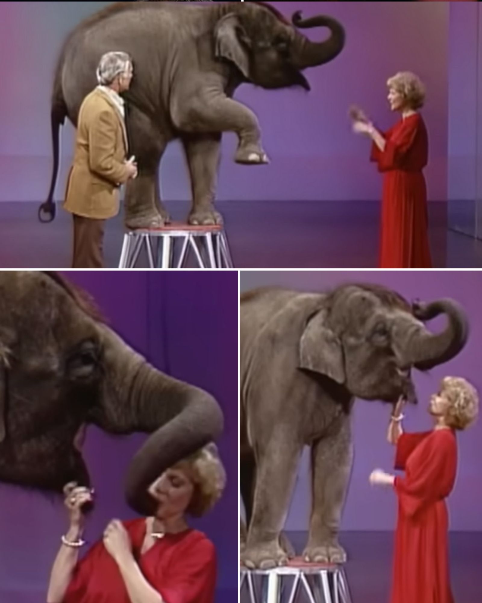 From the moment Dondi waddled onto the stage, the atmosphere shifted from a typical late-night segment to something completely unexpected — and utterly delightful. Johnny Carson, known for his cool composure, could barely conceal his apprehension as Dondi’s curious trunk explored the set. But Betty? She was completely unfazed.
