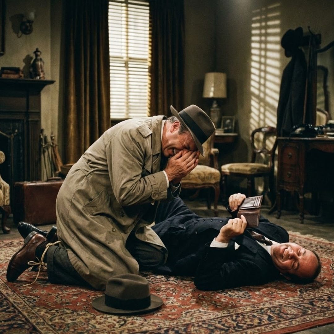 The scene never finished. The mystery was never solved. The detective didn’t catch the killer, but the corpse had successfully pickpocketed the detective.
