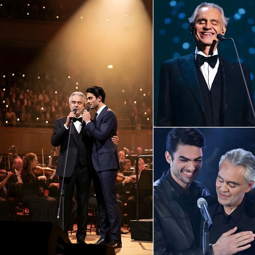 The image has stayed with audiences for a reason. Andrea Bocelli, already a symbol of grace, endurance, and unmistakable artistry, did not need spectacle. Matteo Bocelli, young, composed, and carrying that quiet mix of confidence and emotion, did not need a grand introduction. The power of the moment came from how little was forced. They stood under the lights, close together, letting the song do what speeches never could.