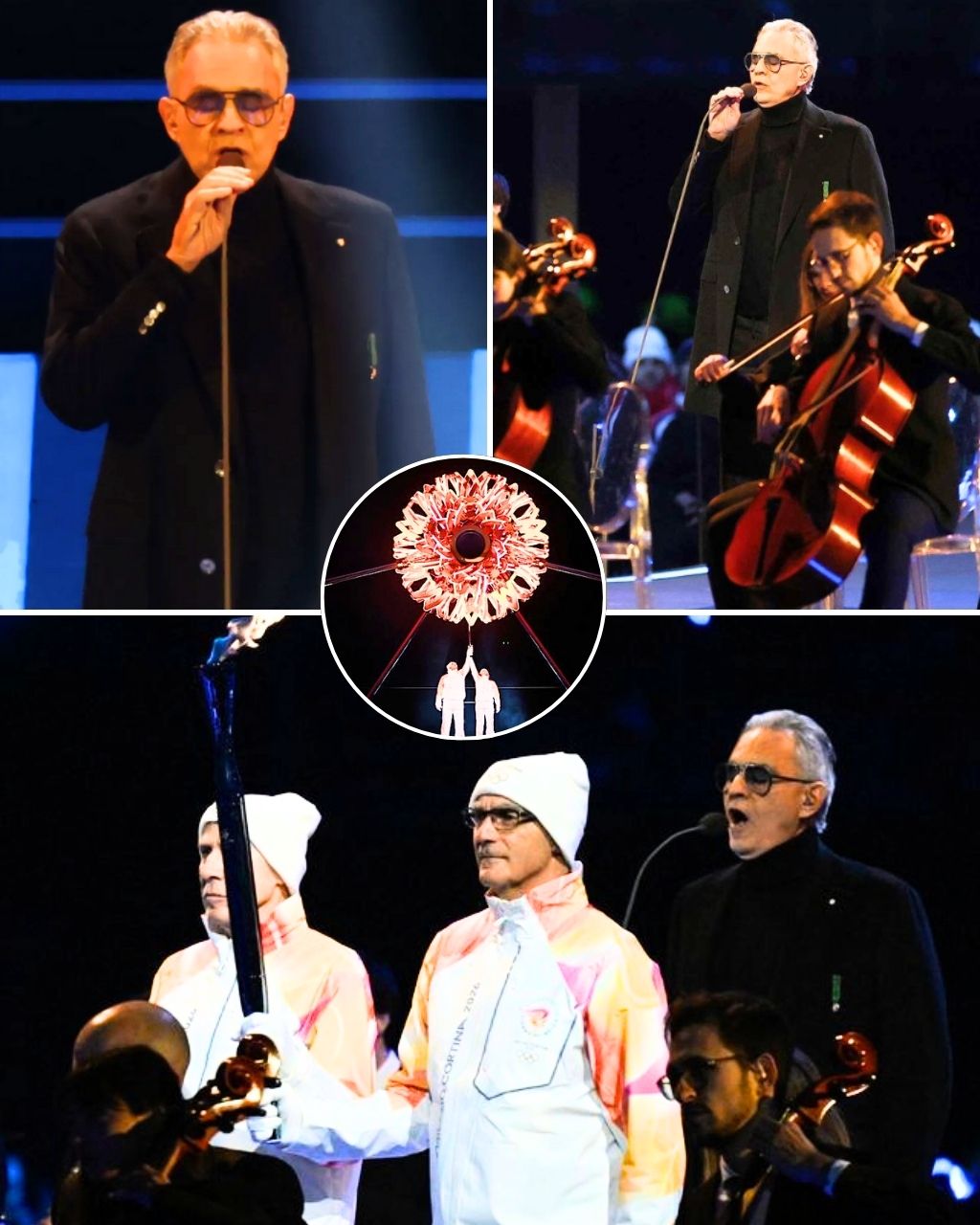 San Siro is not supposed to sound like silence. It is supposed to shake with chants, thunder with applause, and carry the wild energy of thousands of voices at once. But on this night, as the Olympic flame trembled in the breeze and the city seemed to pause around it, something unusual happened. The noise fell away. Not because people were told to be quiet, and not because the moment demanded ceremony. It happened because Andrea Bocelli began to sing, and suddenly nothing else felt necessary.