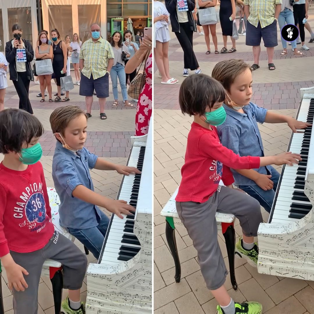 It began quietly. Shoppers moved through the plaza, unaware that something extraordinary was about to happen. A little boy — barely tall enough to reach the keys — climbed onto the public piano bench. His fingers began to move with a calm confidence that didn’t match his age. Within seconds, the usual chatter faded. Heads turned. Phones came out.